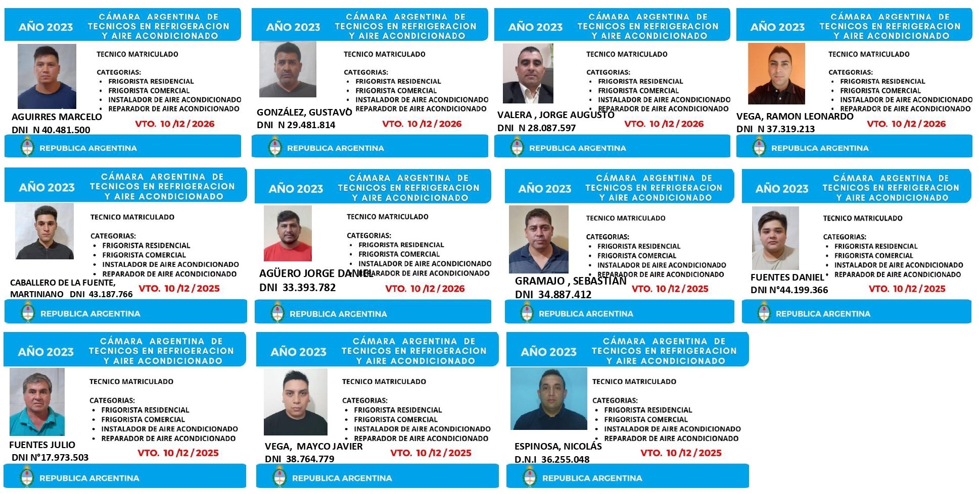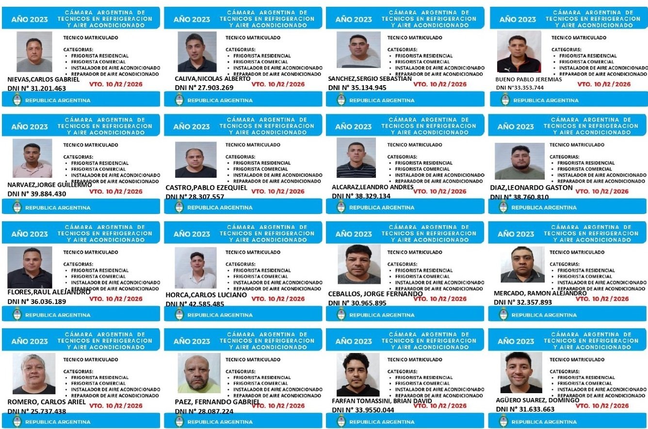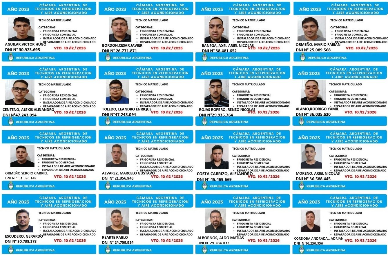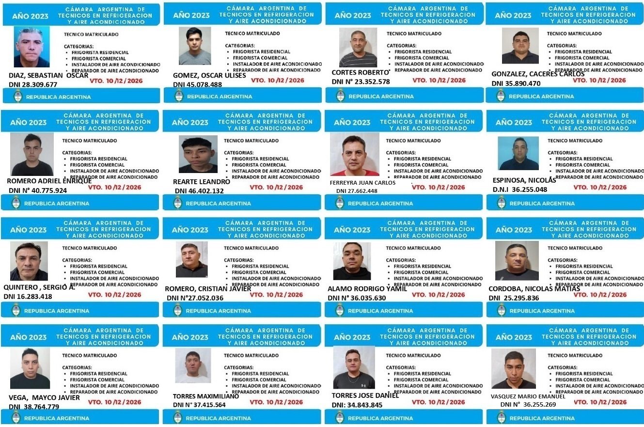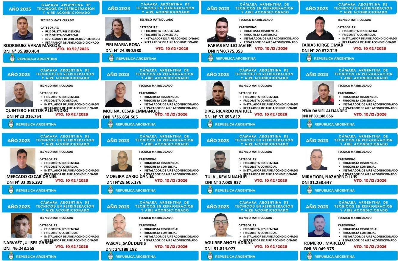 EGRESADOS REGISTRADOS Cámara Argentina de Técnicos en Refrigeración Cámara Argentina de Técnicos en Electricidad Cámara Argentina de Técnicos en Reparación de equipos Celulares Cámara Argentina de Peluqueros, Barberos y Afines Registro Nacional de Secretarias/os Administrativos y Afines Registro Nacional de Auxiliares de Salud Visita el sitio web de la Cámara de Refrigeración y Electricidad.