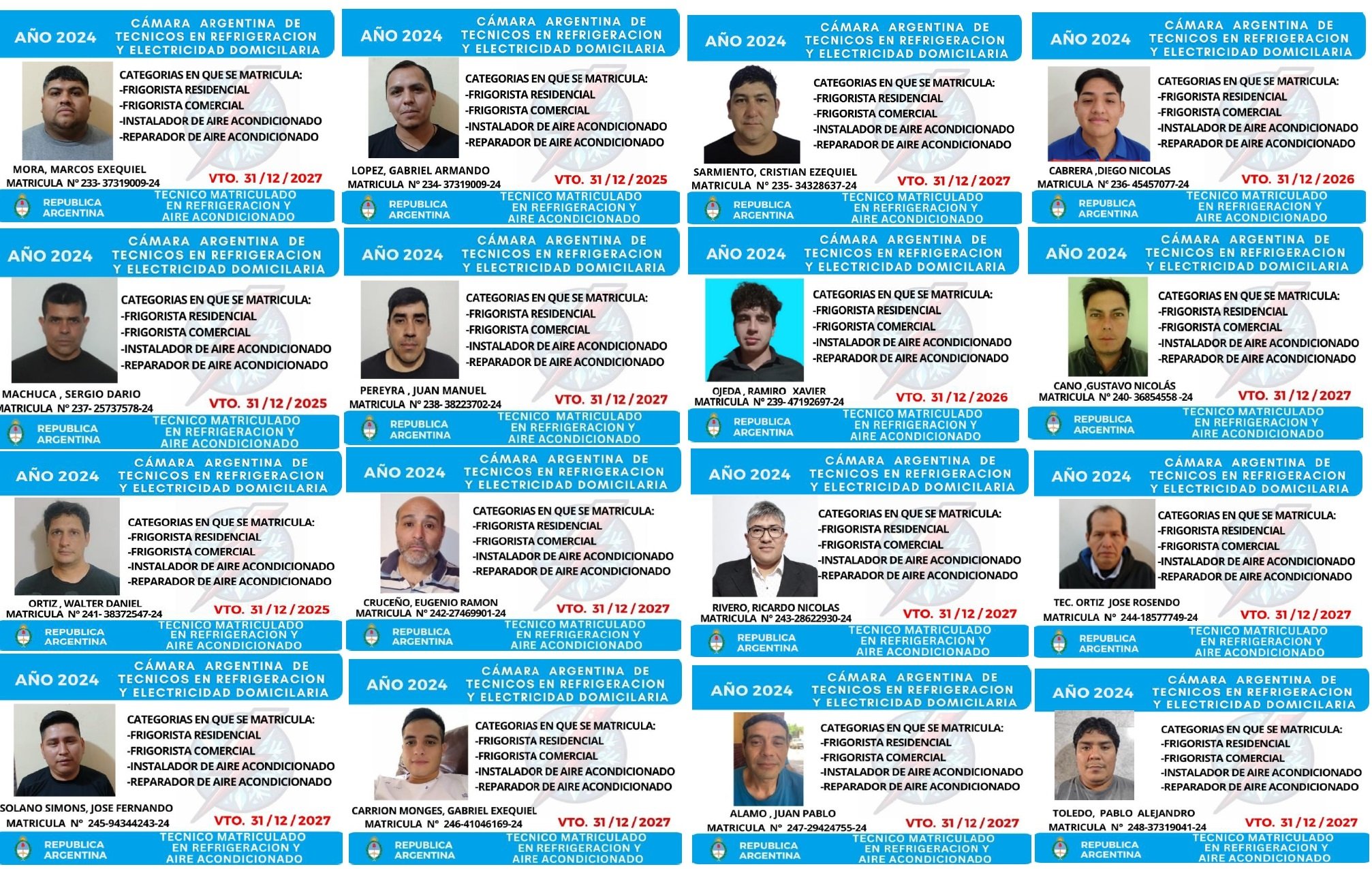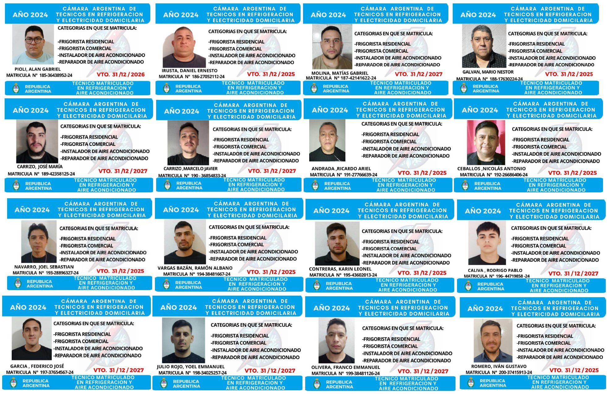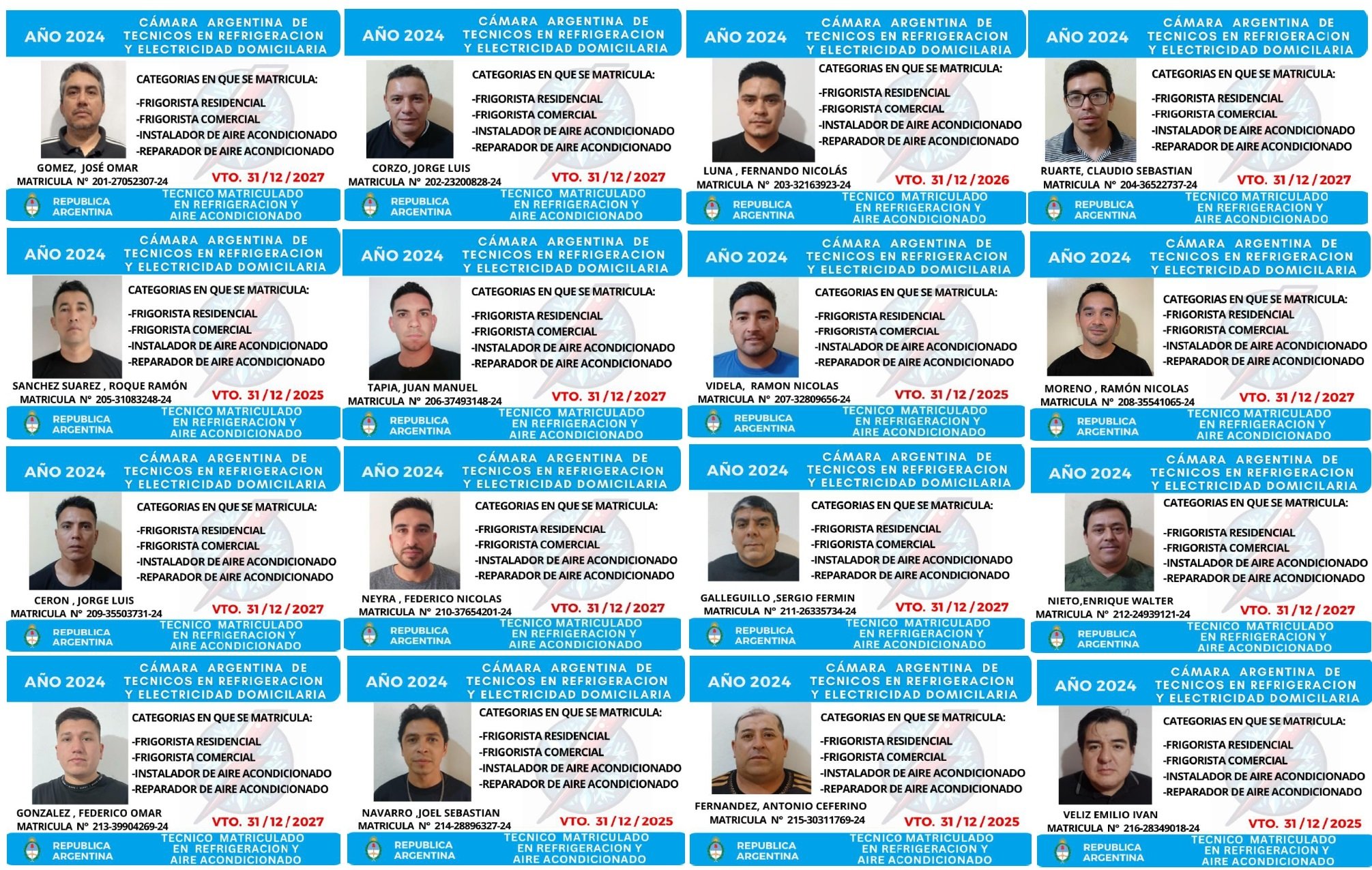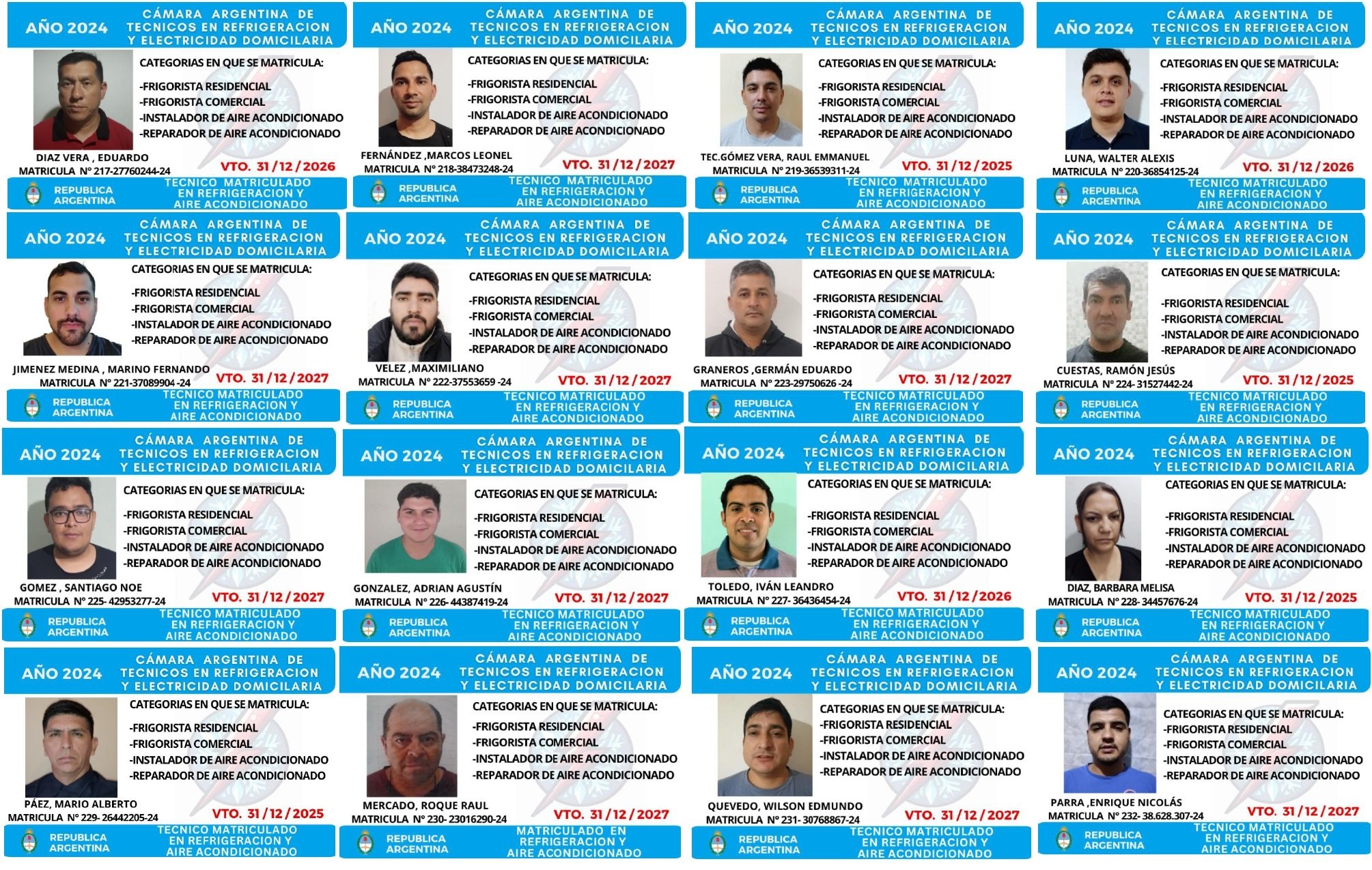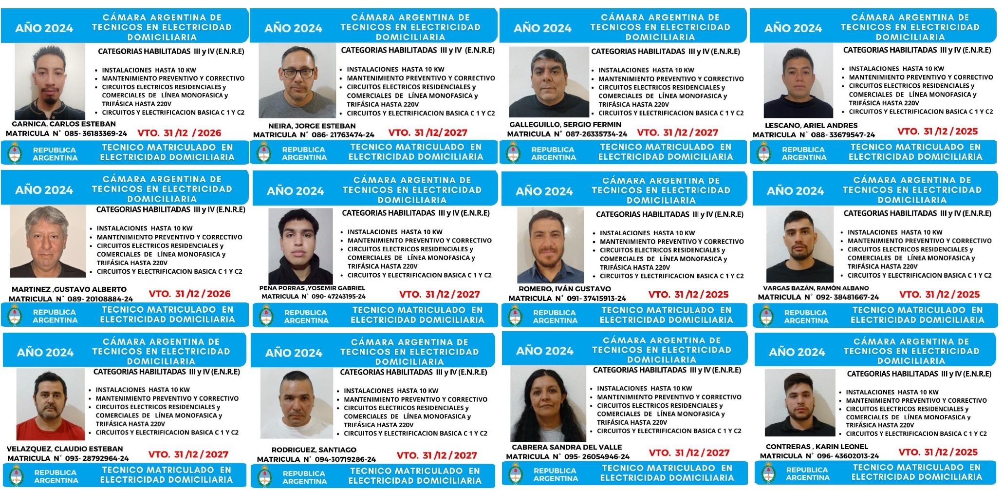 EGRESADOS REGISTRADOS Cámara Argentina de Técnicos en Refrigeración Cámara Argentina de Técnicos en Electricidad Cámara Argentina de Técnicos en Reparación de equipos Celulares Cámara Argentina de Peluqueros, Barberos y Afines Registro Nacional de Secretarias/os Administrativos y Afines Registro Nacional de Auxiliares de Salud Visita el sitio web de la Cámara de Refrigeración y Electricidad.