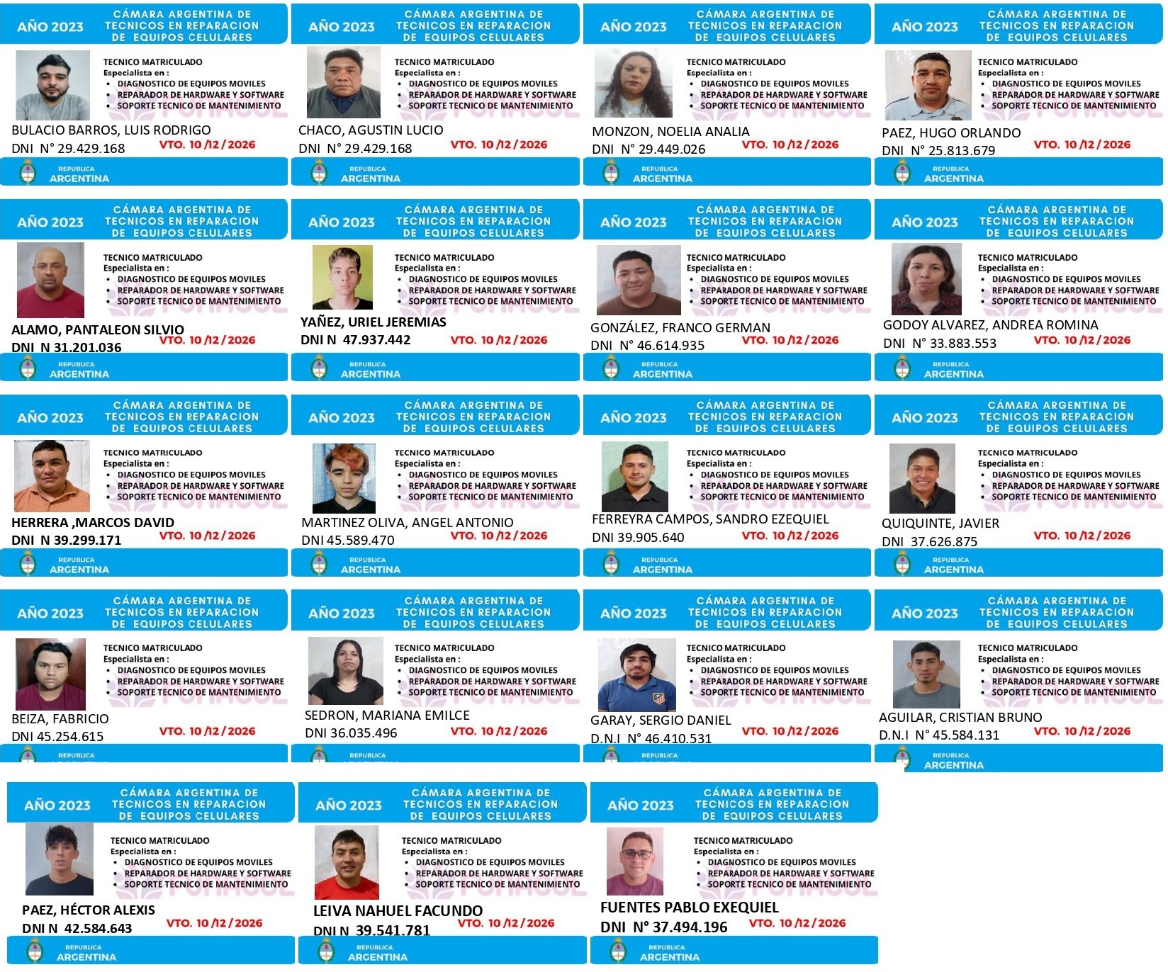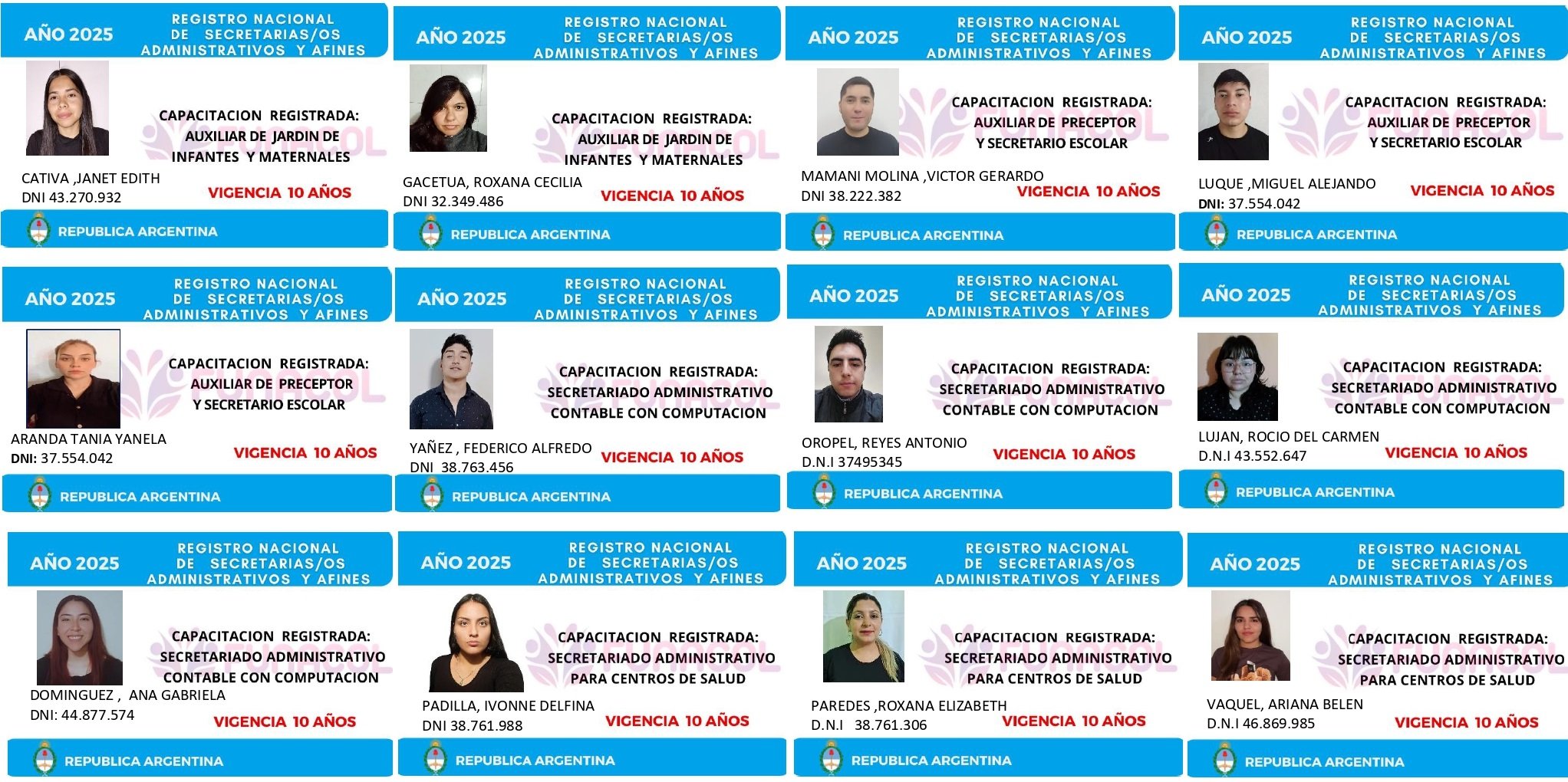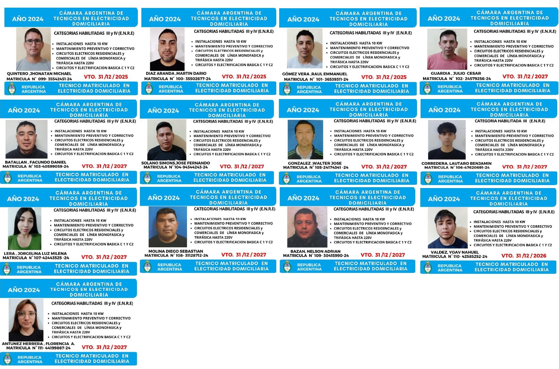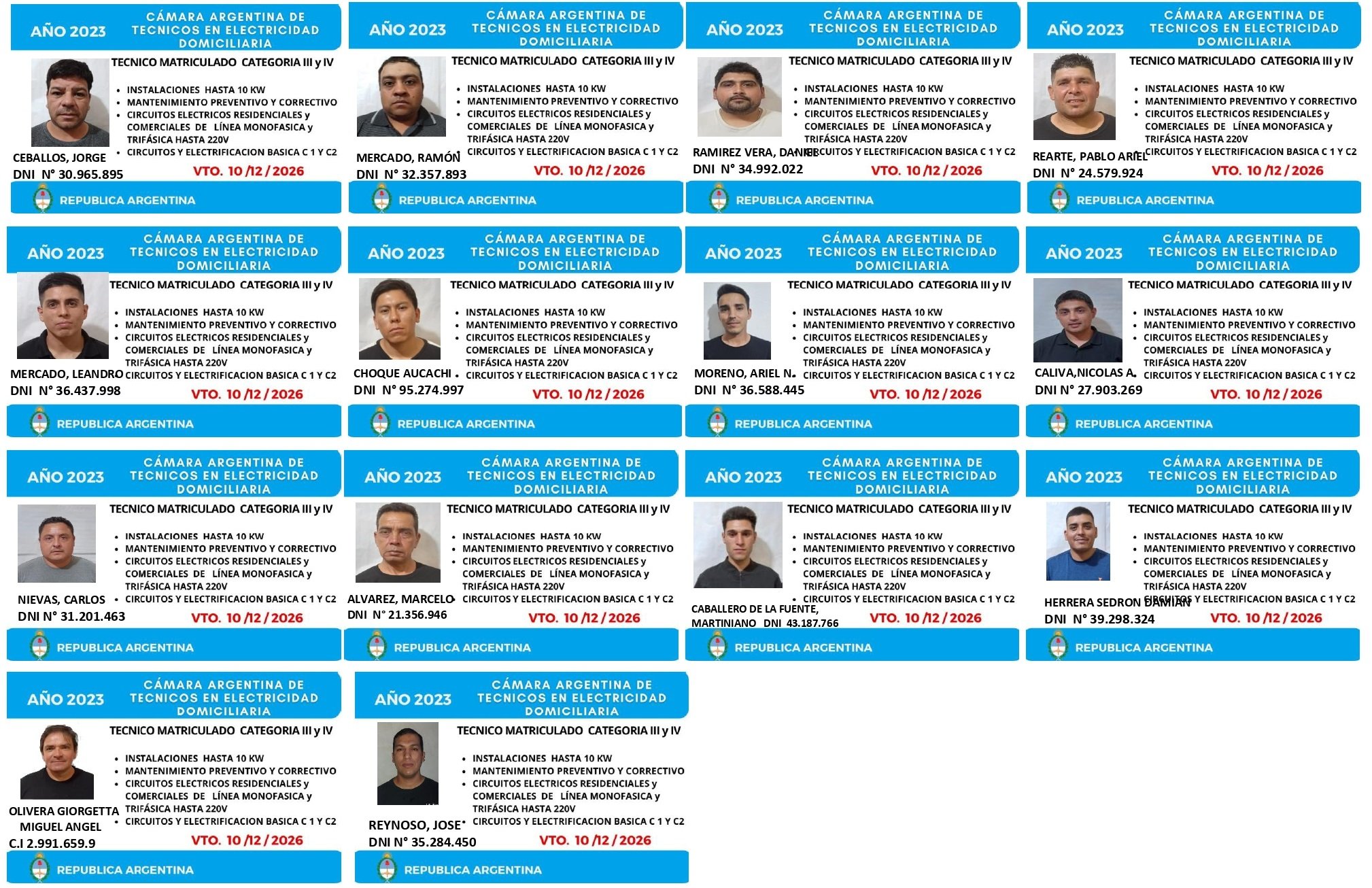 EGRESADOS REGISTRADOS Cámara Argentina de Técnicos en Refrigeración Cámara Argentina de Técnicos en Electricidad Cámara Argentina de Técnicos en Reparación de equipos Celulares Cámara Argentina de Peluqueros, Barberos y Afines Registro Nacional de Secretarias/os Administrativos y Afines Registro Nacional de Auxiliares de Salud Visita el sitio web de la Cámara de Refrigeración y Electricidad.