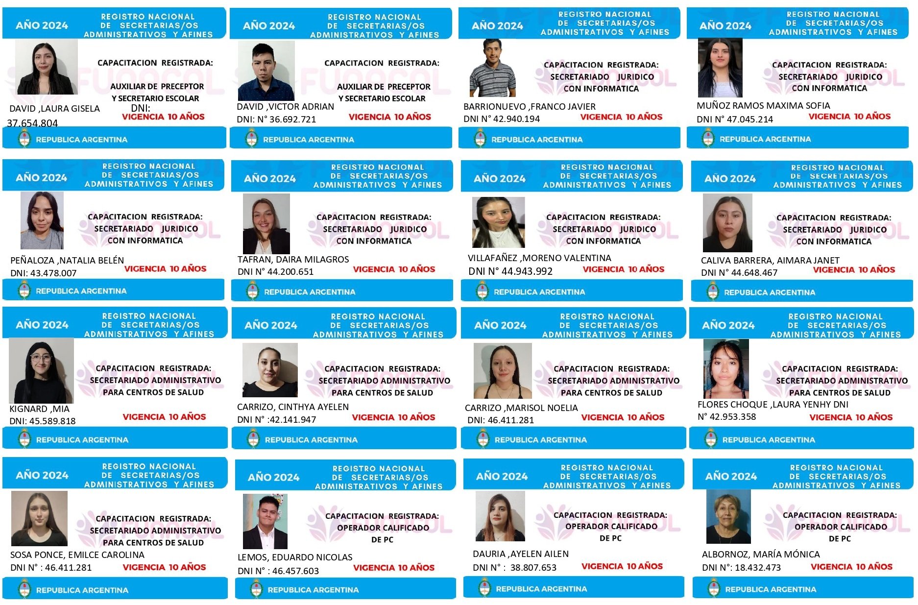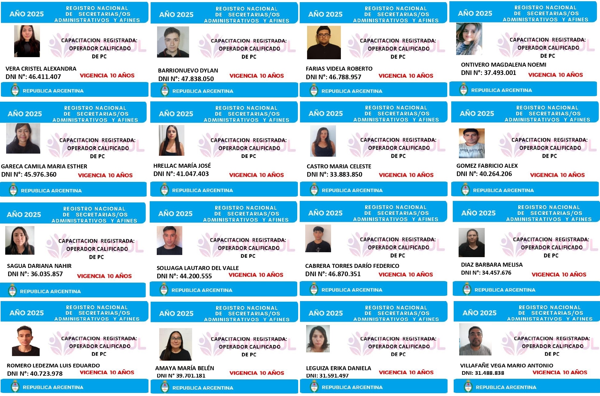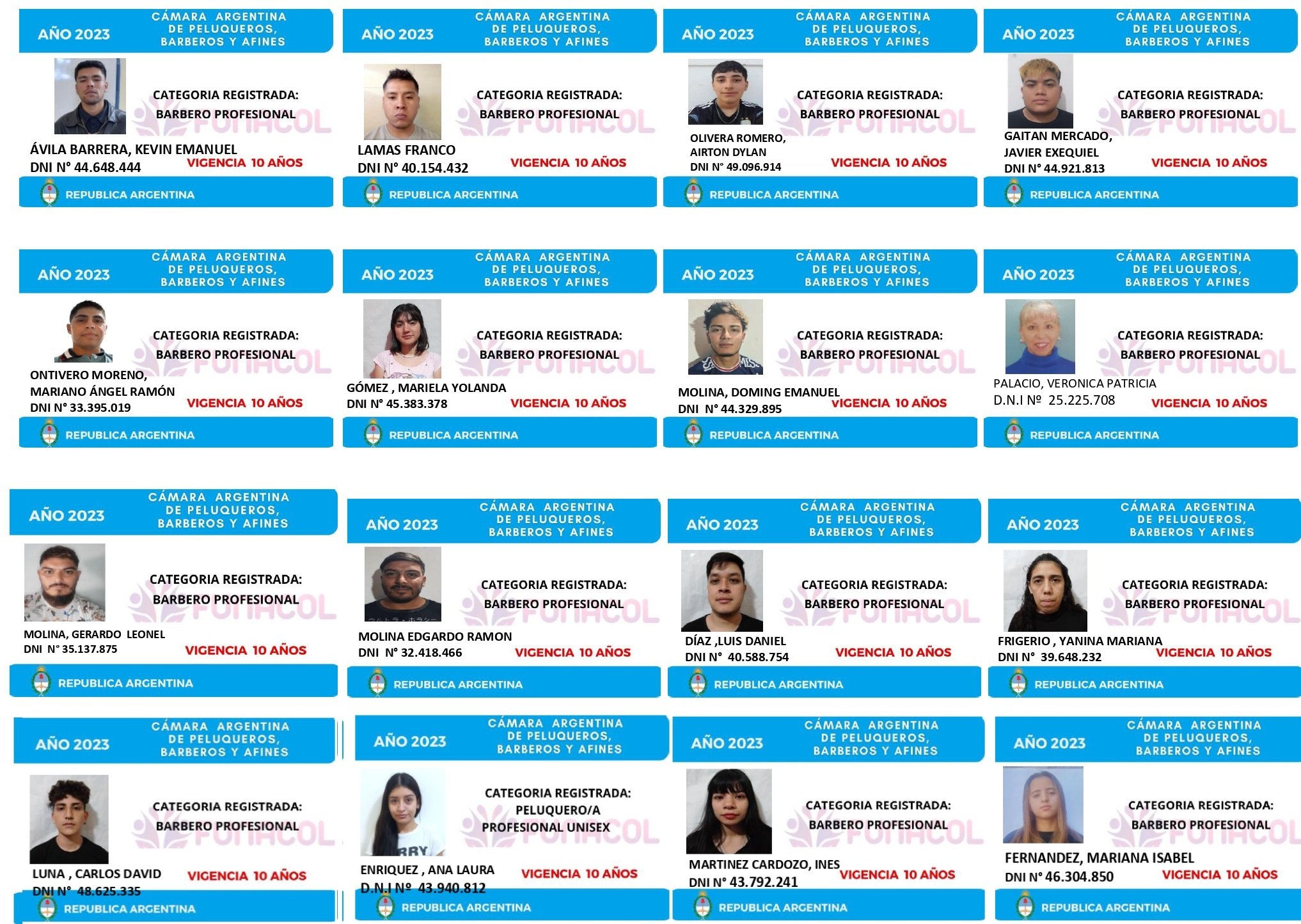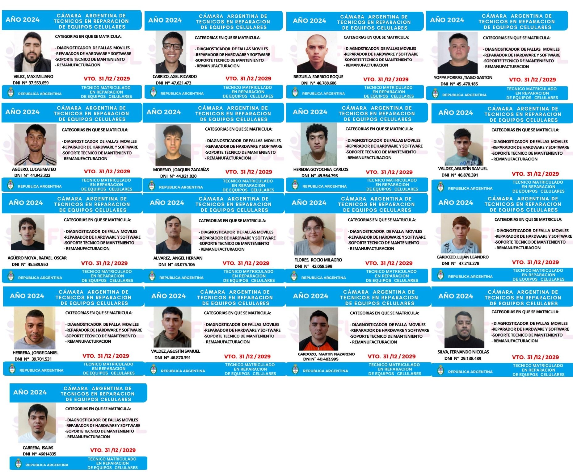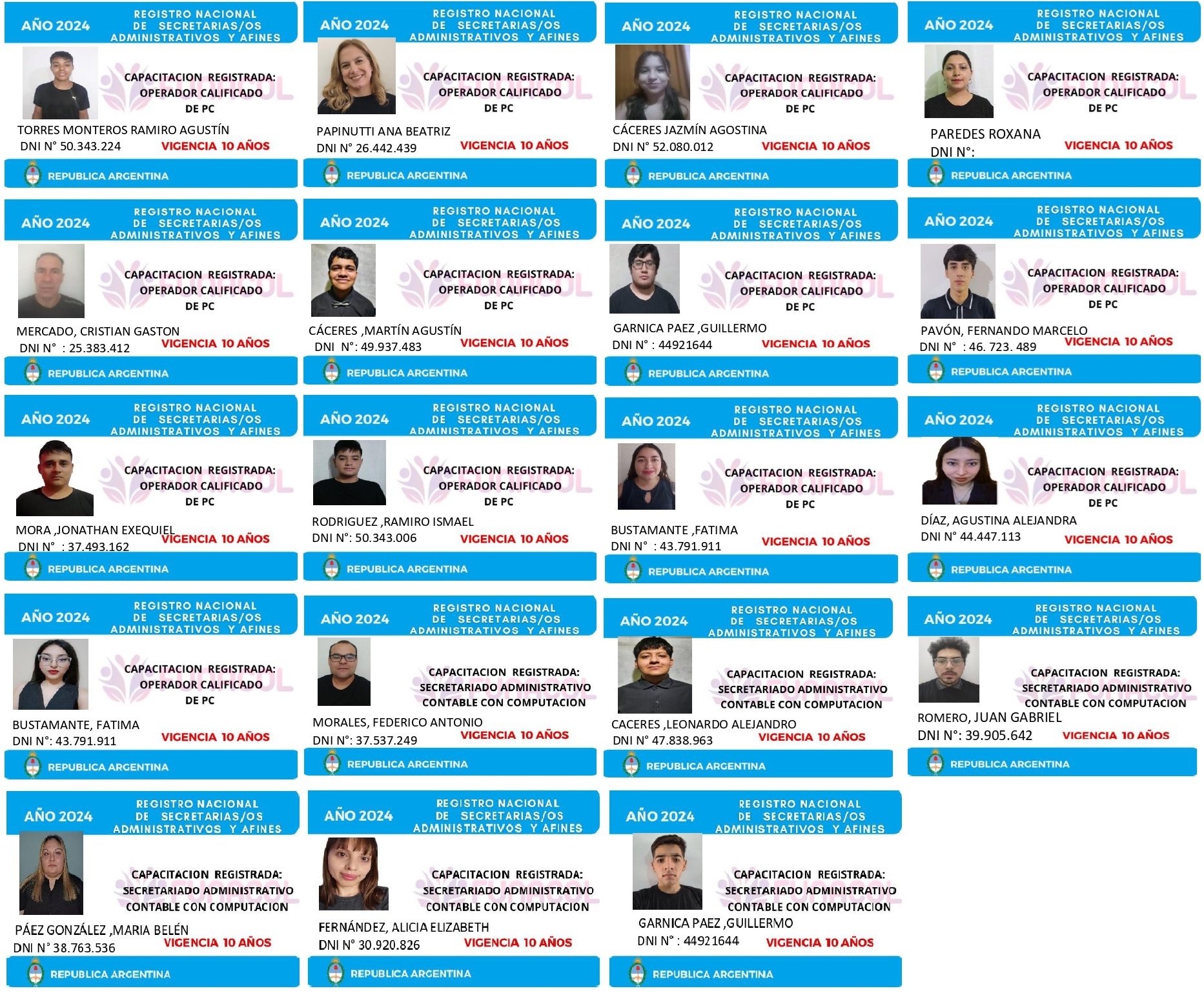 EGRESADOS REGISTRADOS Cámara Argentina de Técnicos en Refrigeración Cámara Argentina de Técnicos en Electricidad Cámara Argentina de Técnicos en Reparación de equipos Celulares Cámara Argentina de Peluqueros, Barberos y Afines Registro Nacional de Secretarias/os Administrativos y Afines Registro Nacional de Auxiliares de Salud Visita el sitio web de la Cámara de Refrigeración y Electricidad.
